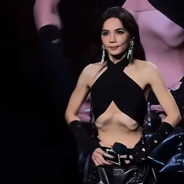 Ella陈嘉桦穿着一袭黑色露脐装,在与观众互动时深吸一口气,原本平坦的小腹瞬间凹陷到极致,肋骨清晰可见。她还特意换了几个角度,反复展示两次,生怕观众没看清。